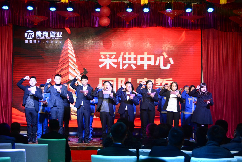 13時(shí)許,會(huì)議在雄壯嘹亮的《國(guó)歌》和《康泰之歌》中正式啟幕。大會(huì)共有五項(xiàng)議程分別是,對(duì)2018年的工作總結(jié)暨2019年度經(jīng)營(yíng)規(guī)劃、表彰2018年度先進(jìn)個(gè)人和集體、舉行迎春文藝匯演、母公司各中心宣誓、聽(tīng)取董事長(zhǎng)對(duì)2019年的總體規(guī)劃和展望。