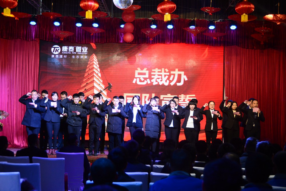 本次年會(huì)的主題是,凝聚發(fā)展 未來(lái)更好。凝聚發(fā)展:凝聚戰(zhàn)略、凝聚思維、凝聚目標(biāo)、上下貫通、發(fā)展共贏;未來(lái)更好:轉(zhuǎn)型升級(jí)、堅(jiān)定戰(zhàn)略、優(yōu)化策略、強(qiáng)化執(zhí)行、未來(lái)更好。會(huì)議的目的是,總結(jié)2018年度的業(yè)績(jī)、亮點(diǎn)和不足,宣貫集團(tuán)五年戰(zhàn)略、三年規(guī)劃及2019年度重點(diǎn)工作方向;樹(shù)立標(biāo)桿、提升員工的凝聚力和歸屬感;同時(shí),進(jìn)行宣誓、動(dòng)員,激發(fā)全體康泰人奮發(fā)向前的氛圍及正能量。